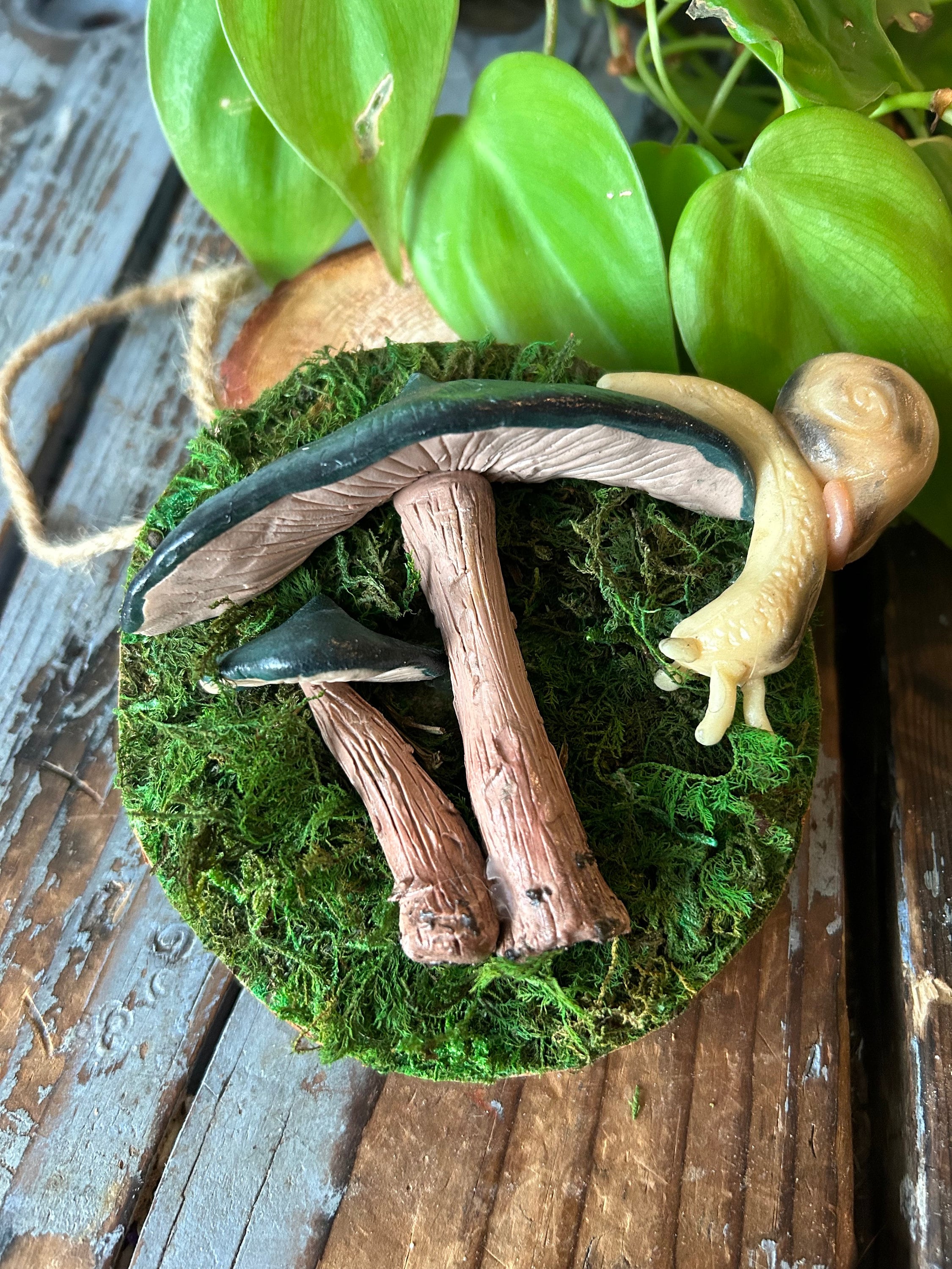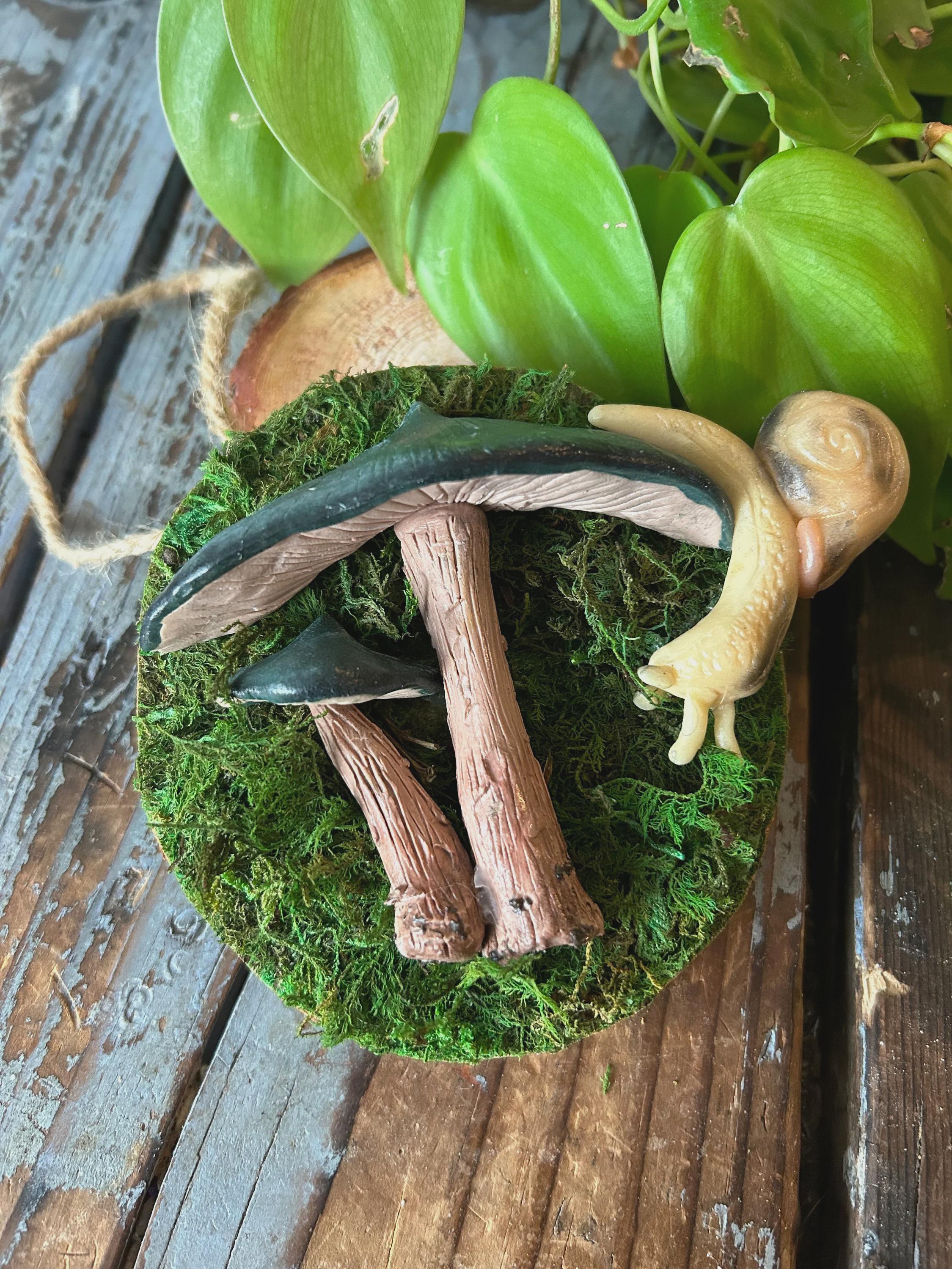🍄‍🟫 Details: • Materials: polymer clay, wood base, glow-in-the-dark accents • Care: indoor use only, gently dust with a soft cloth • Handmade- every piece is unique!