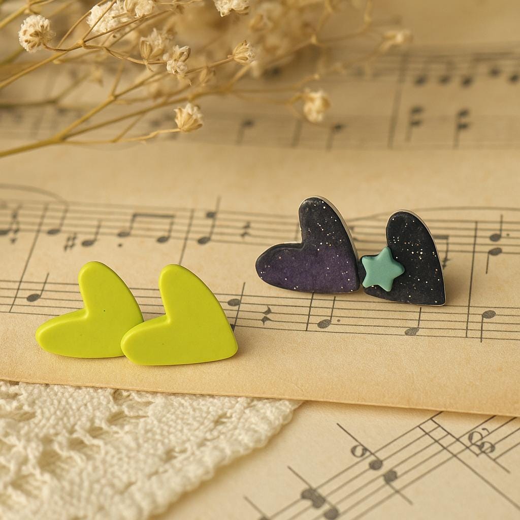Add a dash of charm with these Cutie Heart Stud Earrings, lovingly handcrafted from polymer clay. These lightweight, galaxy-inspired studs are perfect for everyday wear and make a sweet minimalist gift.