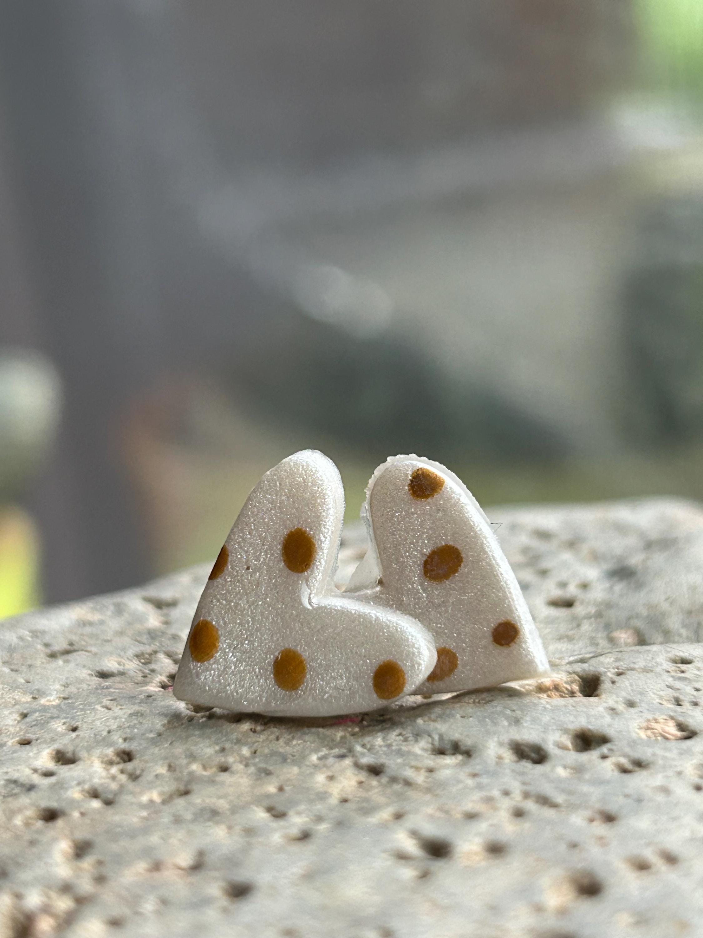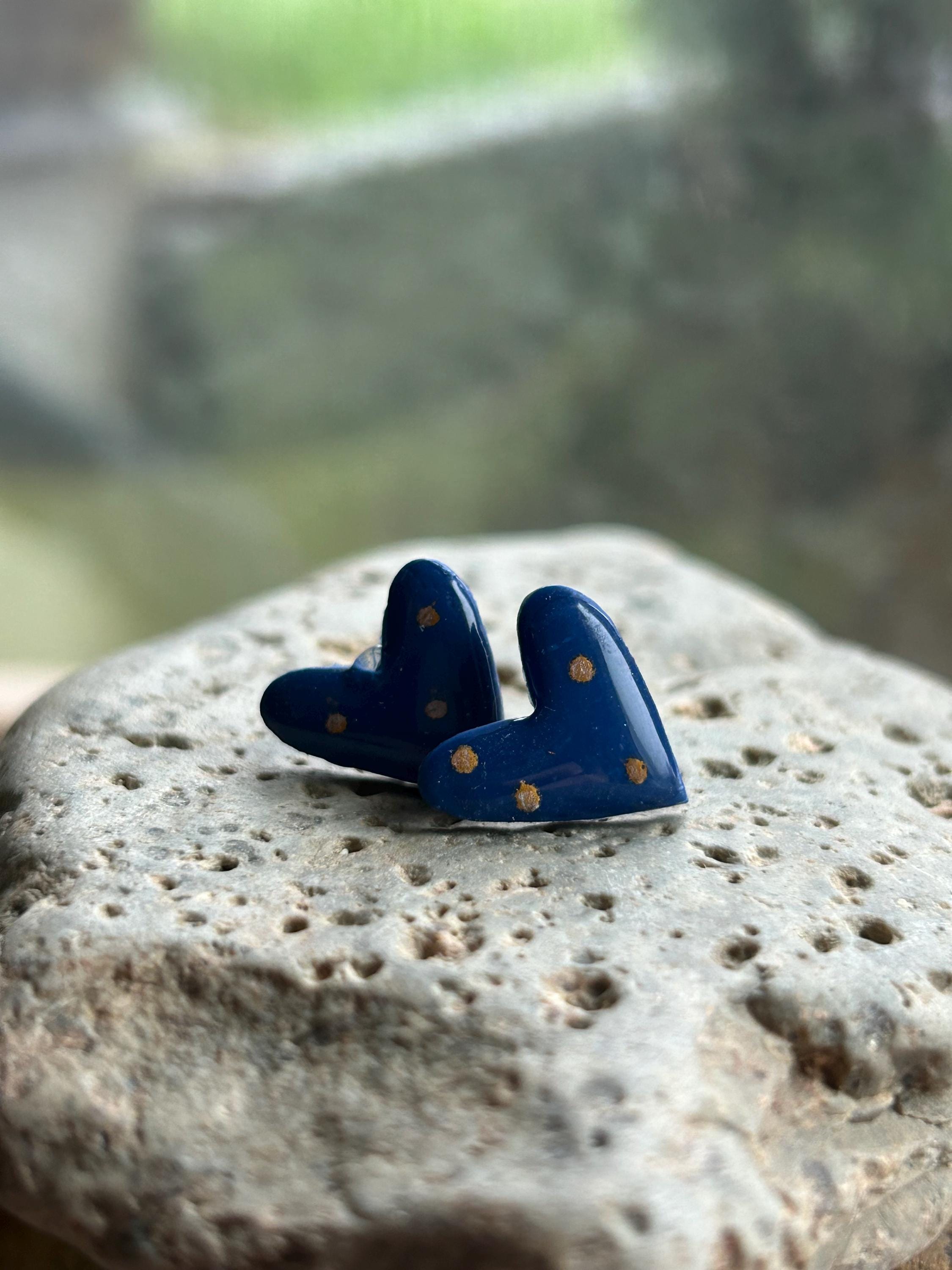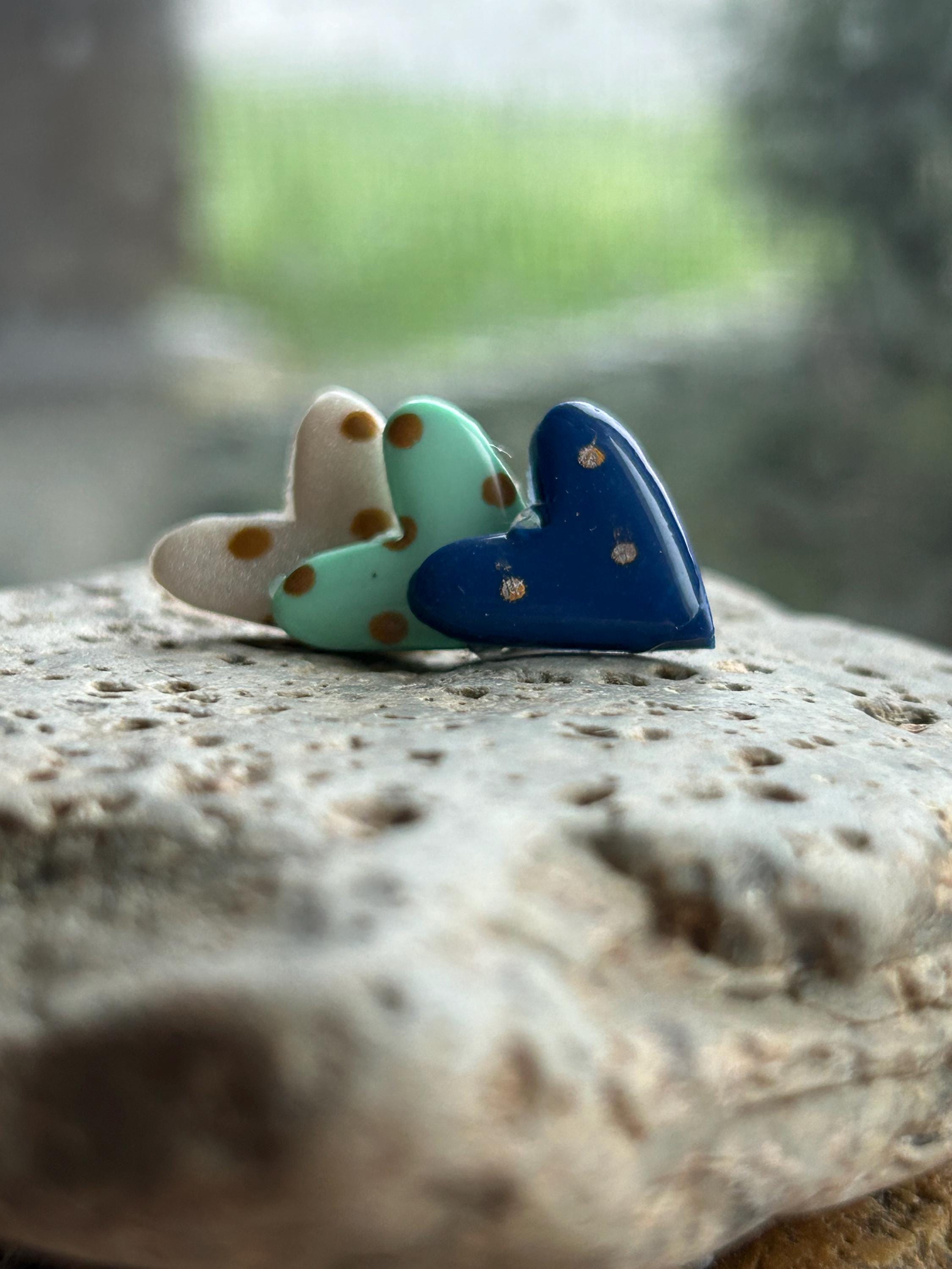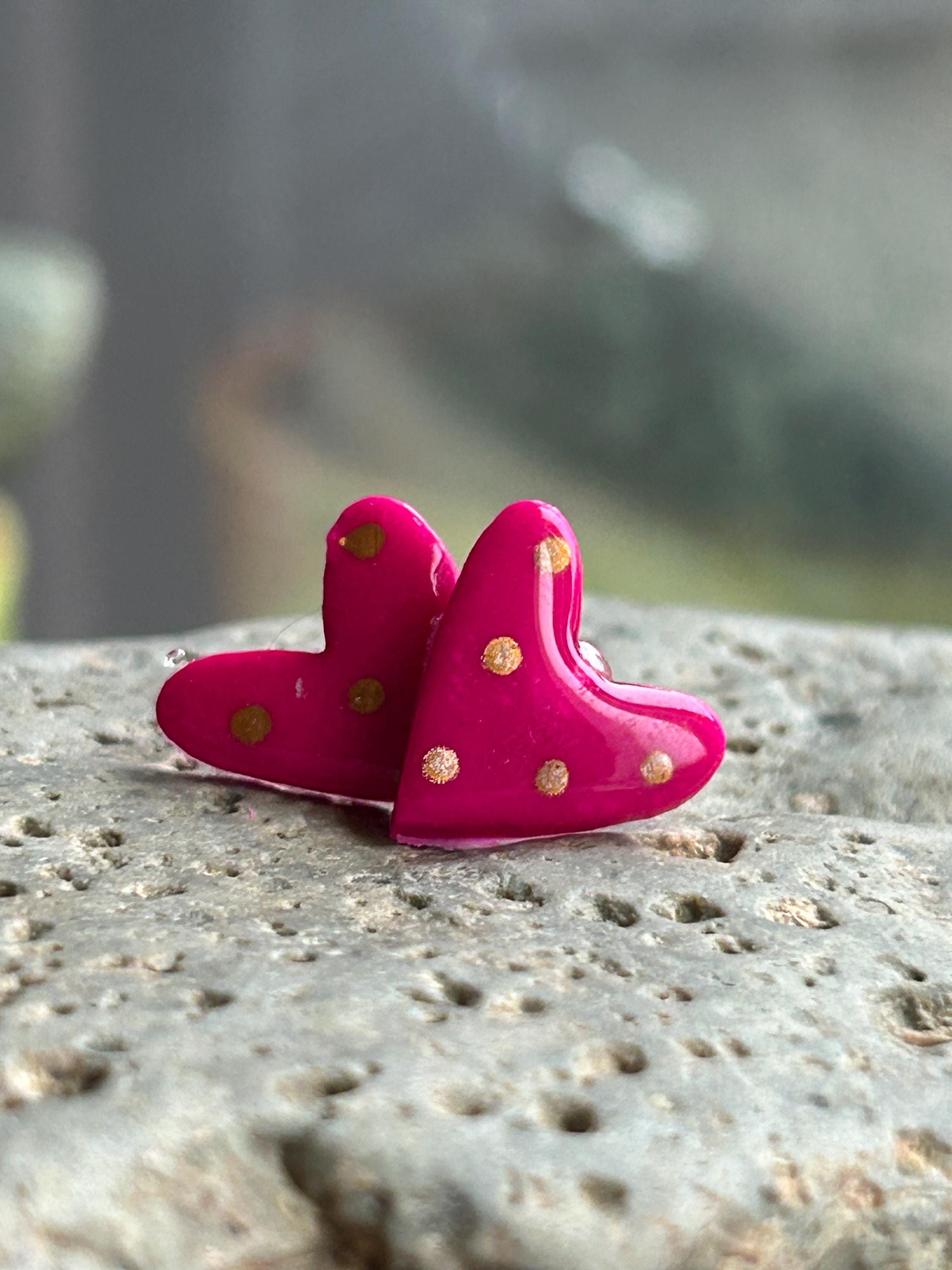 ✨Features: - Handmade polymer clay hearts with a glossy finish. - Hypoallergenic stud posts for sensitive ears. - Lightweight and comfortable for all-day wear. - Approximate size: 0.6 inches (15mm) across.