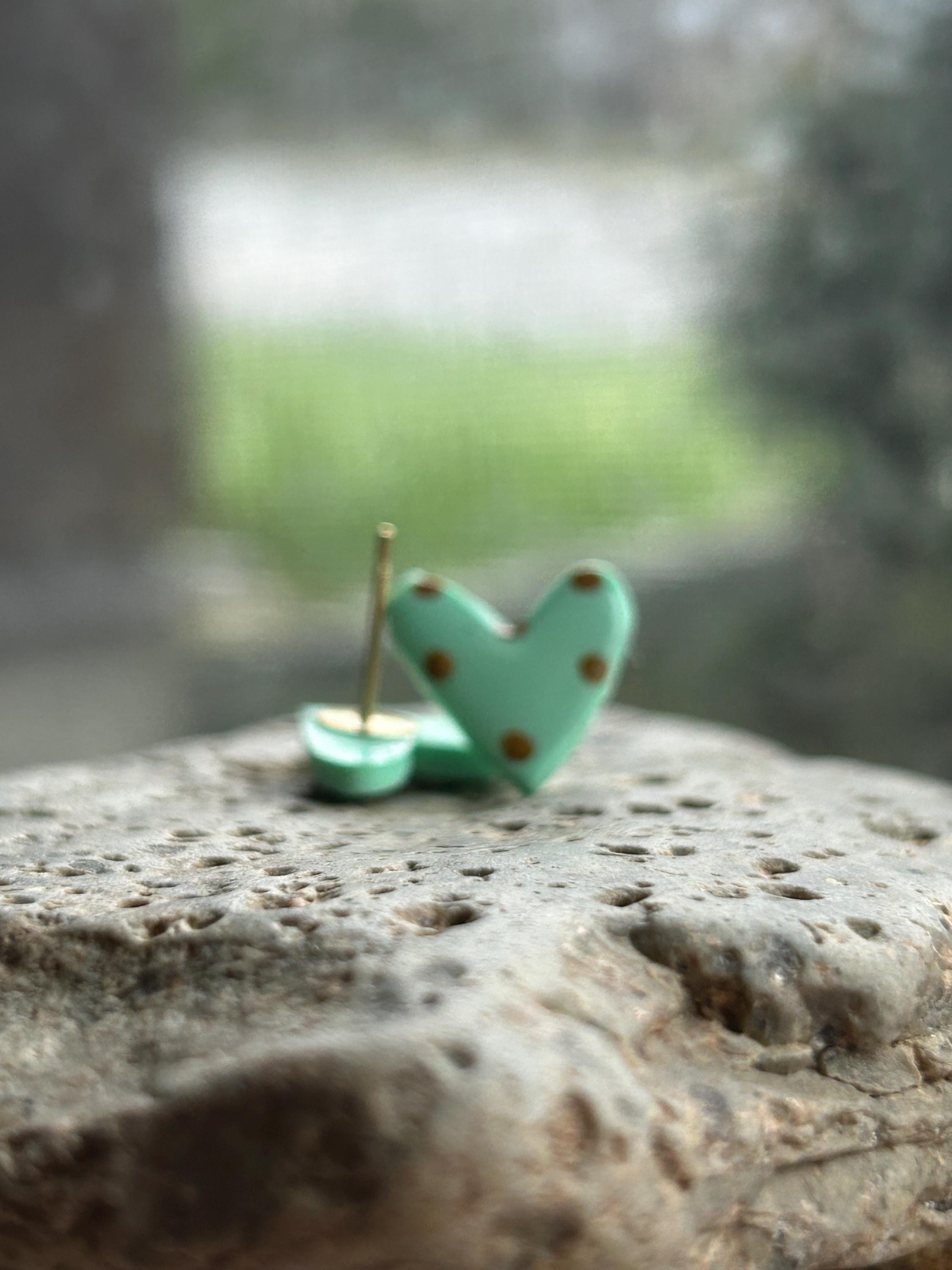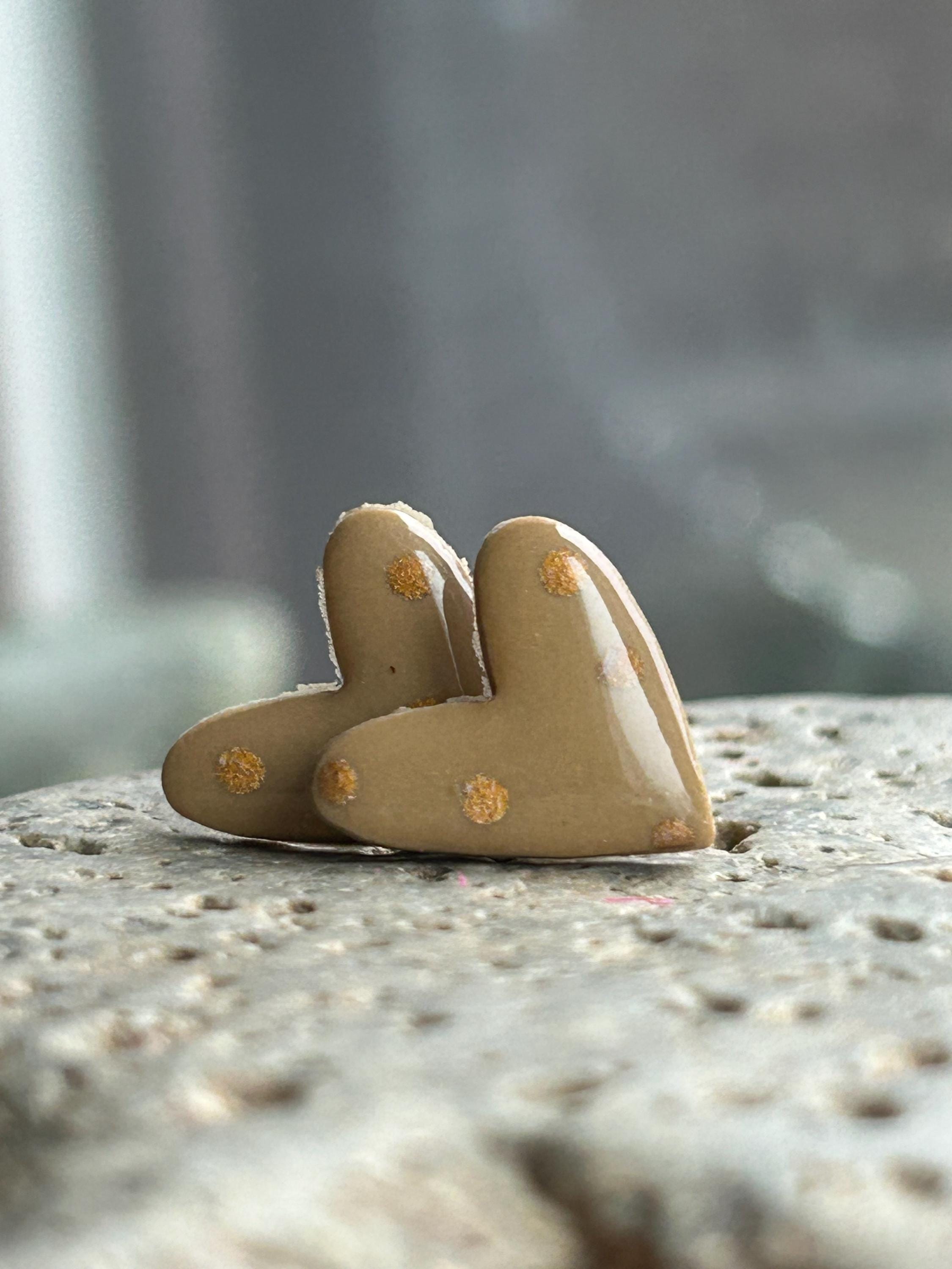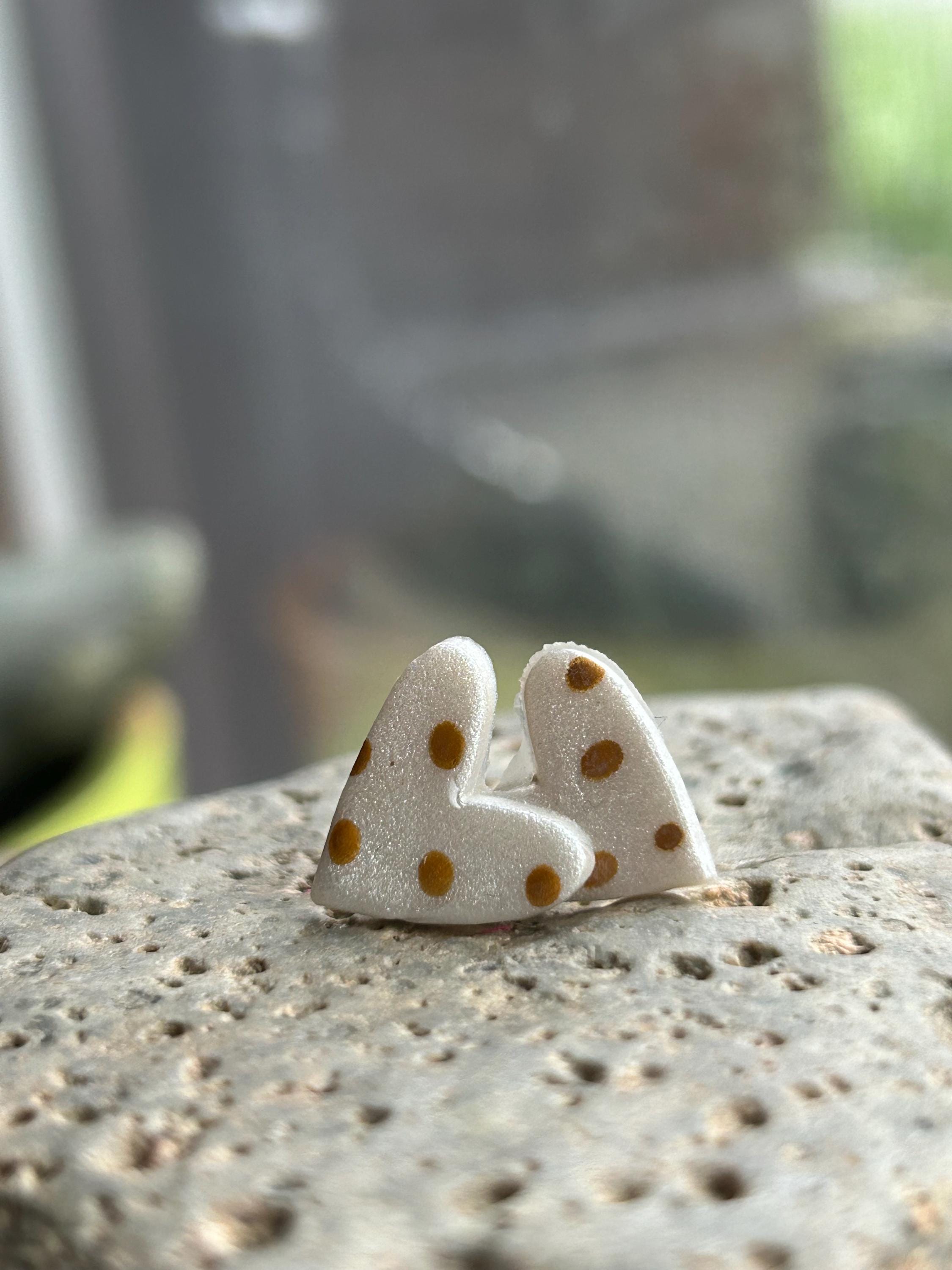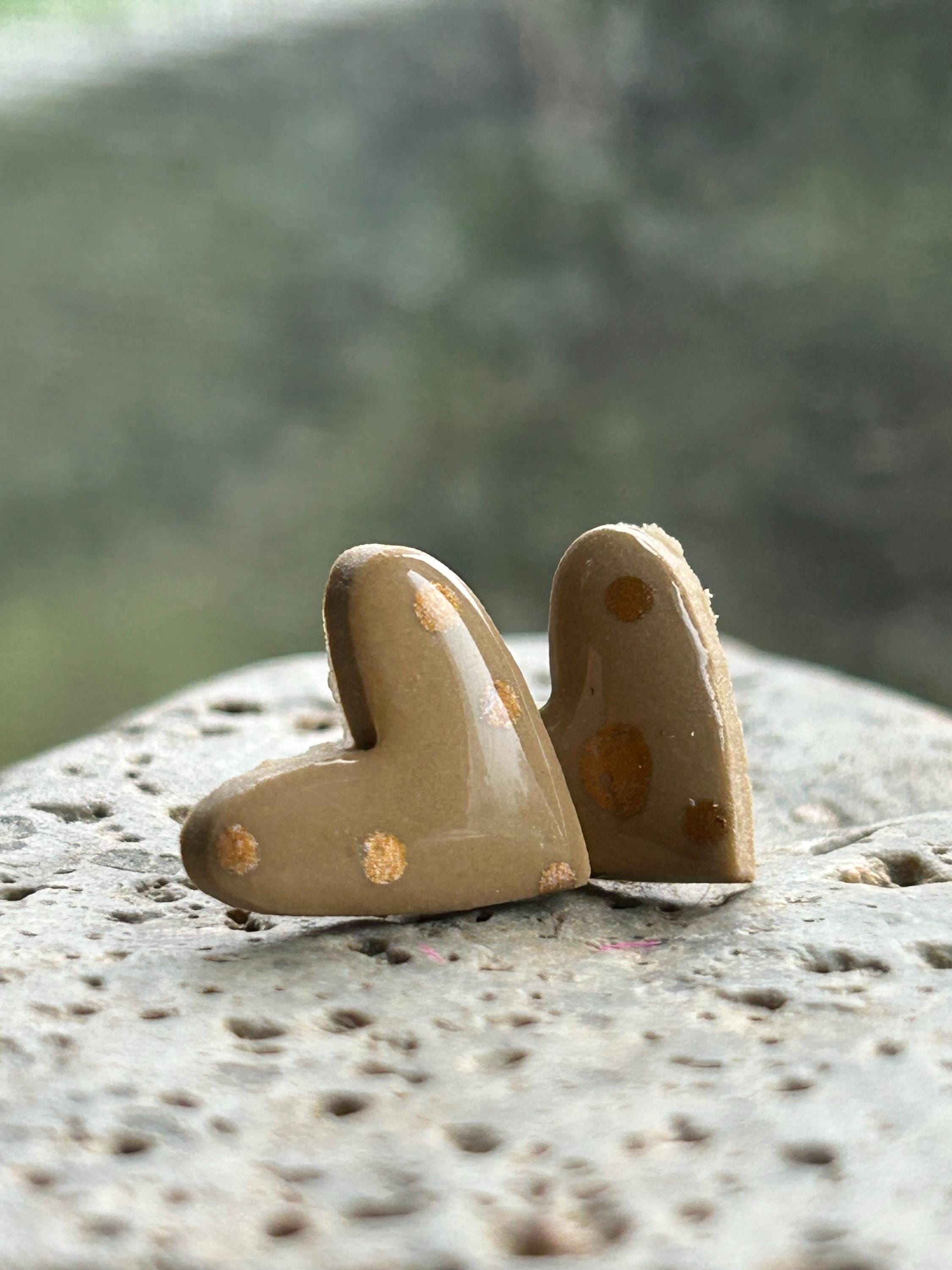 ✨Features: - Handmade polymer clay hearts with a glossy finish. - Hypoallergenic stud posts for sensitive ears. - Lightweight and comfortable for all-day wear. - Approximate size: 0.6 inches (15mm) across.