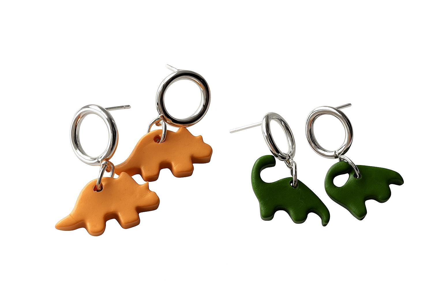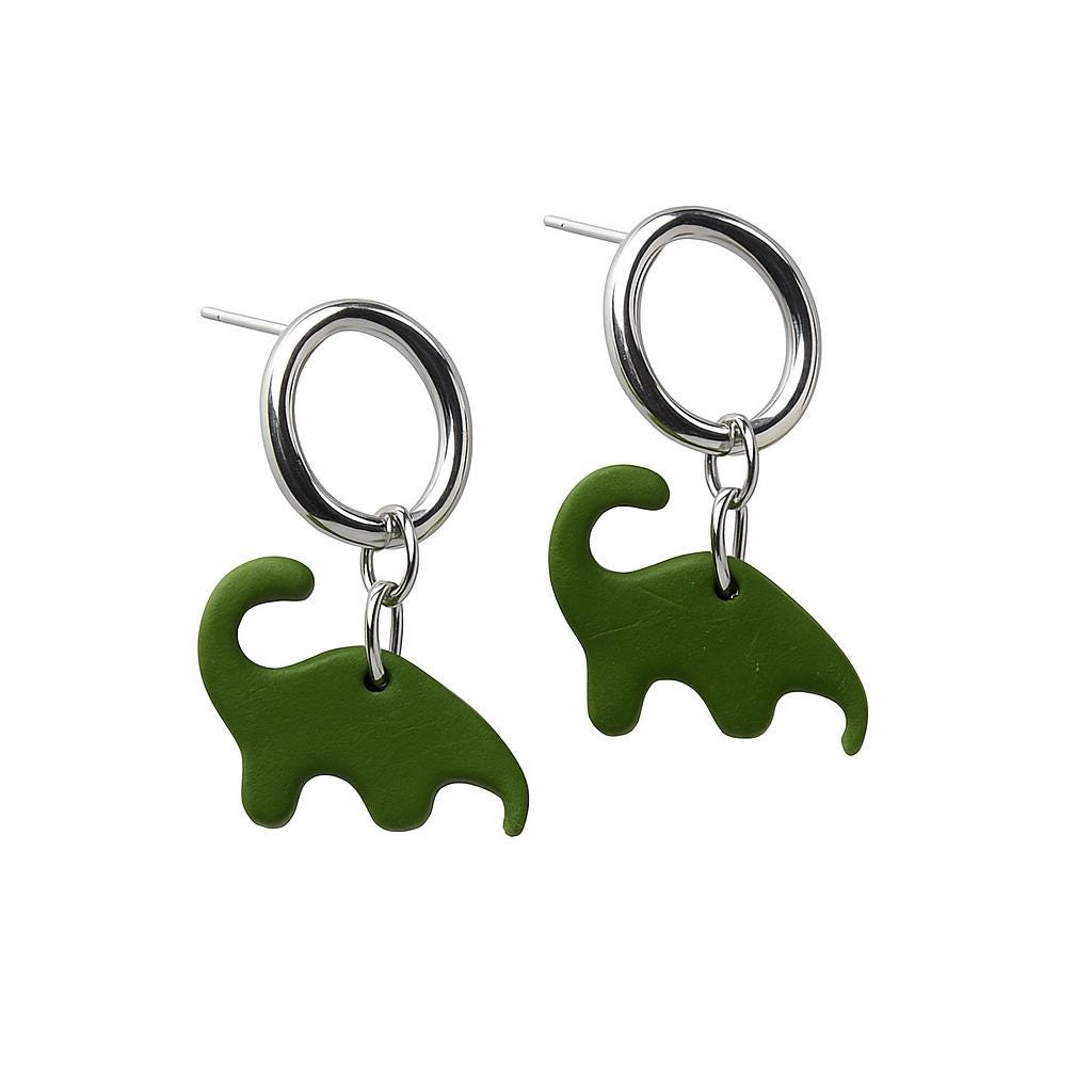 🌿 Details: - Handmade from polymer clay - Silver-tone hoops, lightweight & comfy - Nickel-free (safe for sensitive ears) - Dino size: approx. 2–2.5 cm (0.8–1 in) - Choose your dinosaur: triceratops or brontosaurus! - Packaged gift-ready