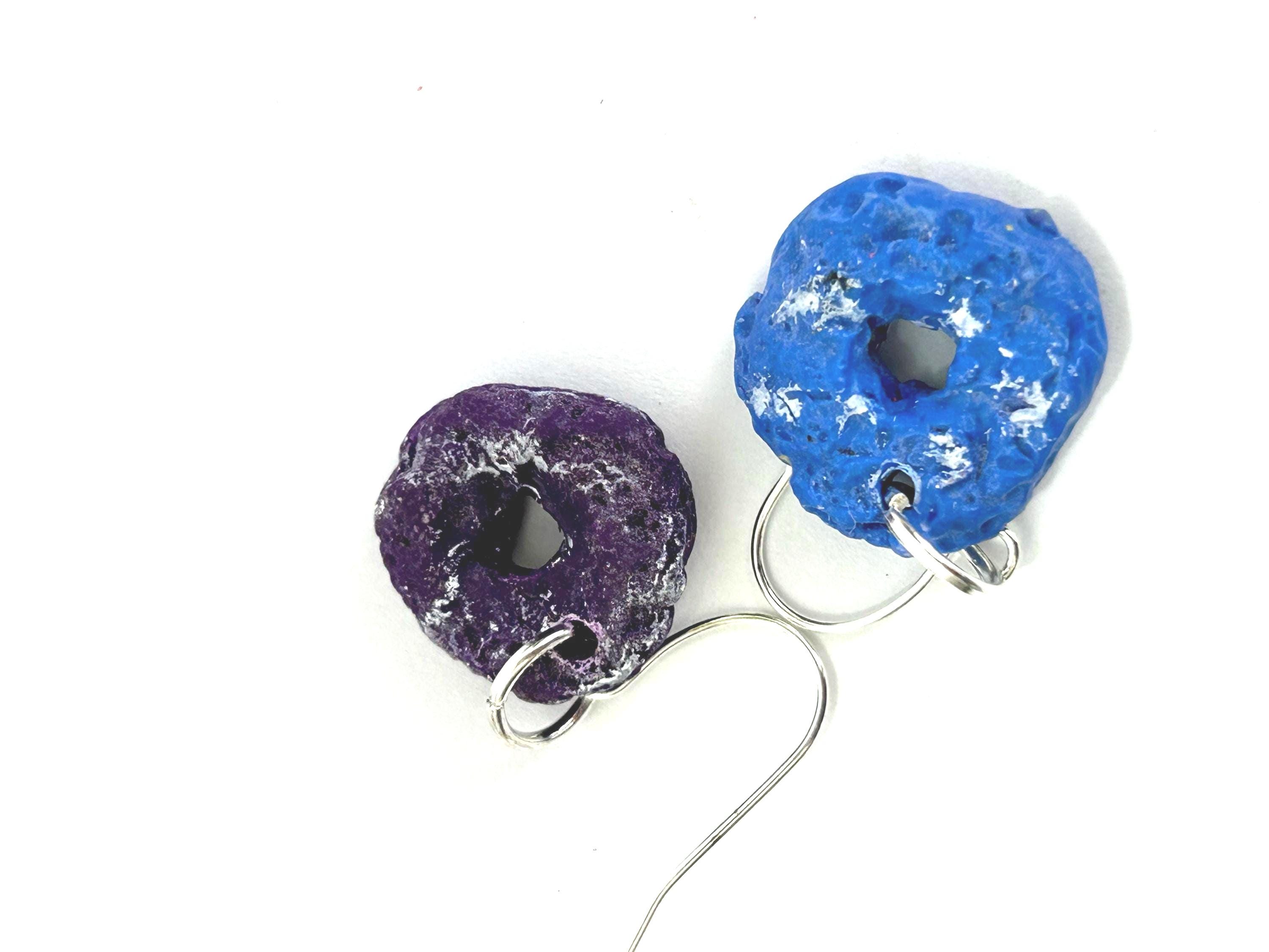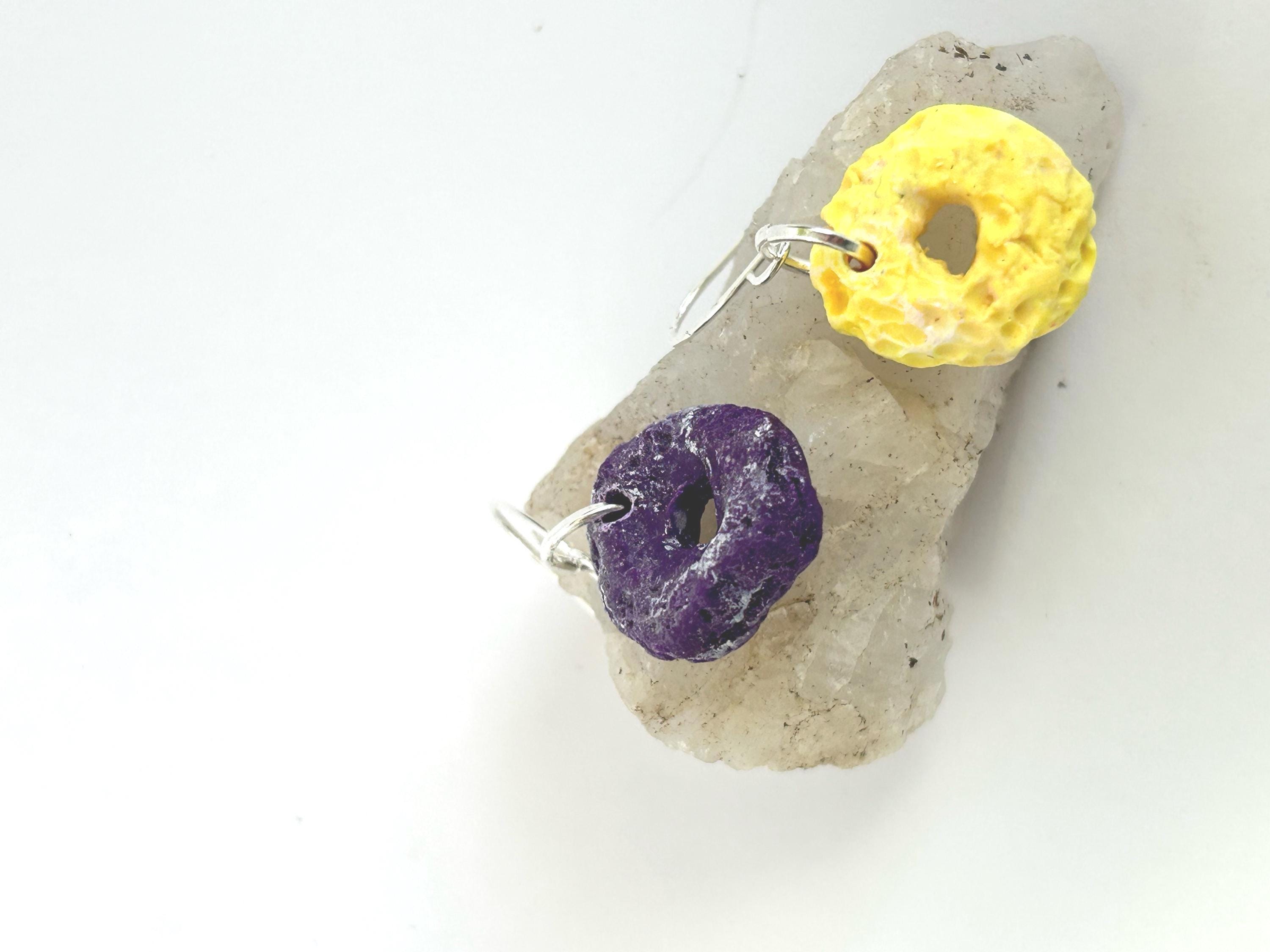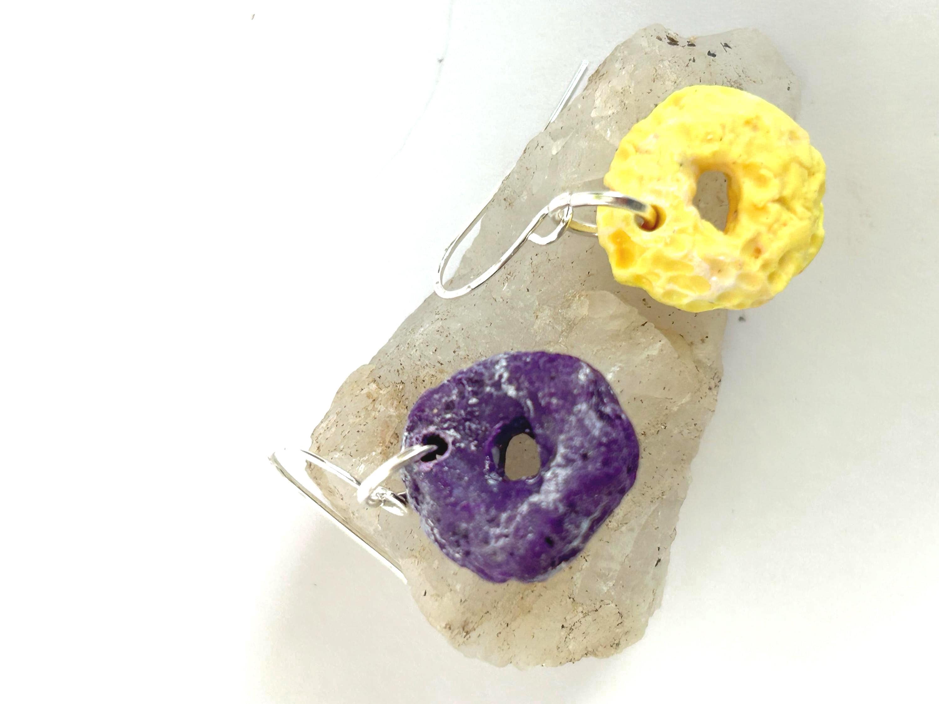 These handmade polymer clay earrings are inspired by everyone’s favourite fruity cereal. Each earring is carefully sculpted and textured to look just like a Fruit Loop – colourful, playful, and perfect for making a statement.